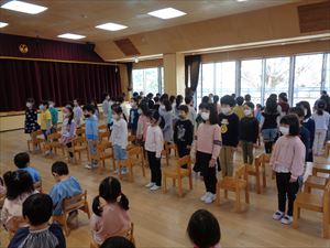 うめ組、すずらん組は歌「にじのむこうに」の