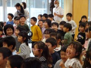 みんなで集合写真を撮った後はチーバくんと一緒に踊ります。
